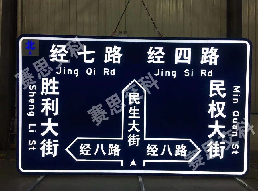 近日,濟南民生大街新添一批“半透式主動發光指路標志”,由南京賽思交通信息科技有限公司研制、生產。該標志采用主動發光工藝,不需要依賴外部光源照射,標志體內置光源投射標志面,形成筆畫飽滿、對比度高的標志發光信息,將指路標志的交通語言信息在全天候展示得淋漓盡致,為整個民生大街添色不少,用主動發光來關乎“民生”出行更加安全。