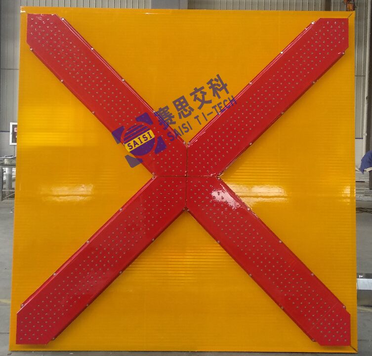 技術(shù)參數(shù):尺寸2000mm*2000mm;黃底、紅圖案、紅色LED管;LED點(diǎn)陣式主動發(fā)光標(biāo)志;太陽能供電或外接市電。