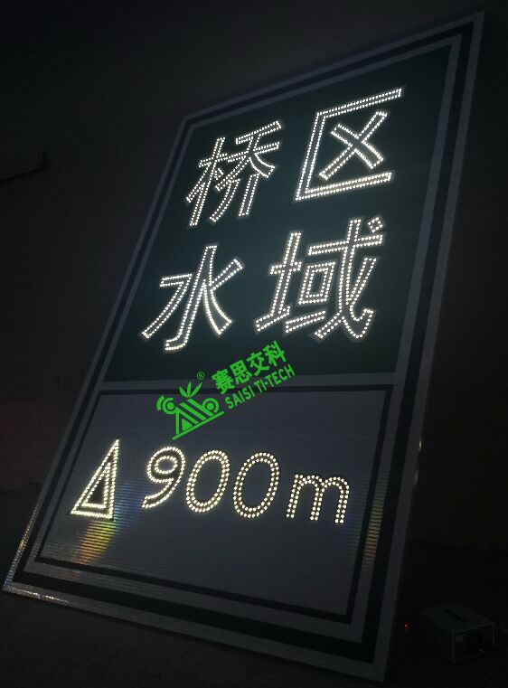 我公司生產的”橋區水域“航道發光指示標志,采用LED嵌入式主動發光工藝,將國標IV反光膜的反光特性與LED的光源發光特性有效融合,實現發光版面從點光源發光,到線條輪廓發光融合,再到整體版面的視覺成像融合,呈現一種適合人眼瞳孔觀察舒適度范圍內的光像效果,在黑暗的航道環境中,大大增強”橋區水域“航道發光指示標志的夜間視認效果。