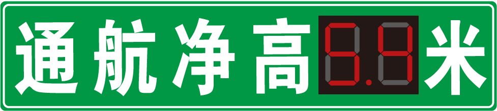 船舶準(zhǔn)備通行橋梁、管道等跨河建筑物時(shí),需提前獲知橋梁底沿與航道水面之間的高度,又稱“航道凈高”,以保證能安全通過橋梁下方航道,各級(jí)航道所必須的通航凈高在國(guó)家頒布的通航標(biāo)準(zhǔn)中均有規(guī)定,隨著航道水域出現(xiàn)的“漲潮期”、“枯水期”,航道凈高數(shù)值也是動(dòng)態(tài)變化的,所以作為橋梁設(shè)計(jì)、管養(yǎng)方,為橋梁安裝能動(dòng)態(tài)顯示通航凈高數(shù)值的發(fā)光標(biāo)志牌,能有效保障航道的通行安全,本次設(shè)計(jì)的“通航凈高動(dòng)態(tài)顯示發(fā)光標(biāo)志”(下一:白天效果;下二:夜間效果)。