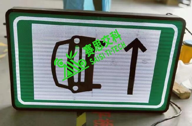 隧道雙面全透電光標志,面板采用專用透光材質;背板采用鋁制板材;抱邊結構采用專用的模具成型鋁制結構;面板圖案文字部分,主要分兩種:(1)國標IV類反光膜;(2)UV專用圖案打印(不反光)。其安裝通常采用L型支架架構,側裝于隧道內壁。光源采用專用內置照明超亮燈珠,內部投射于標志表面,形成發光效果。
