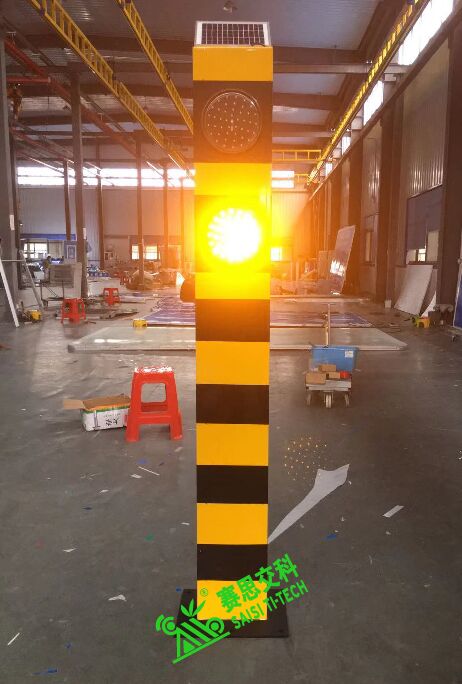 太陽能道口閃光警示柱,采用LED大廣角罩燈分布于柱體正面,根據不同的指示功能需要,在上方設置對應的標志牌,并在圖案輪廓上外嵌LED高亮燈珠,實現夜間、惡劣天氣中的全天候識別效果,整體發光工作能耗不需要接入外部電源,通過自身攜帶的太陽能板來實現電能供應的“自給自足”。從實用主義的角度來看,其主要有以下幾個優點: