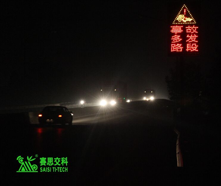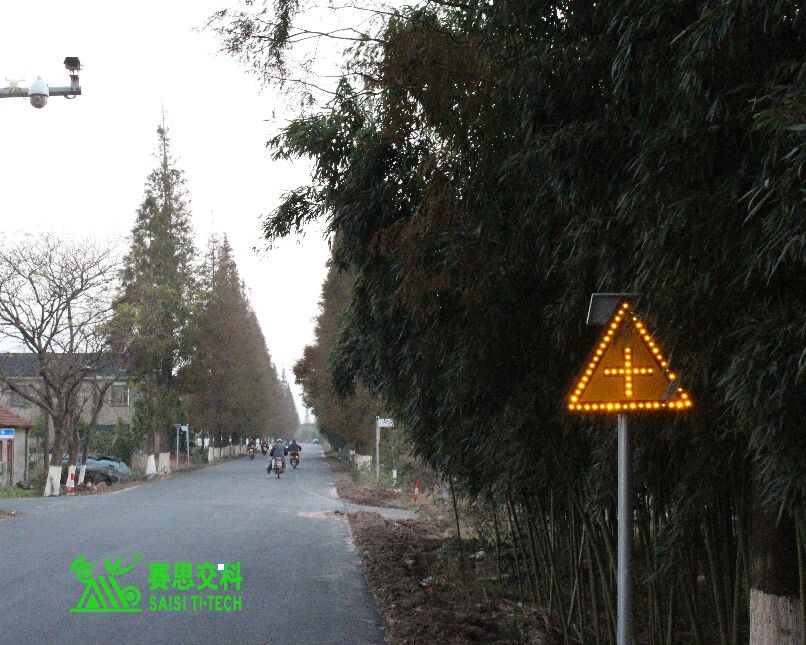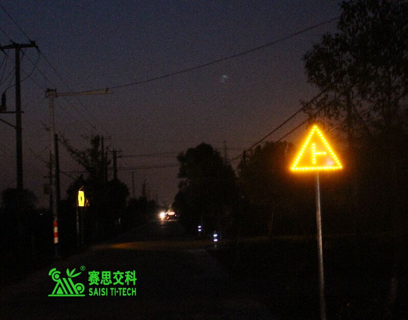 ②交通標志。公路主線應設置必要的“限速+注意前方岔口”標志,有條件的,可采用太陽能主動發光標志,以提升遠距離視認性,及夜間警示效果。