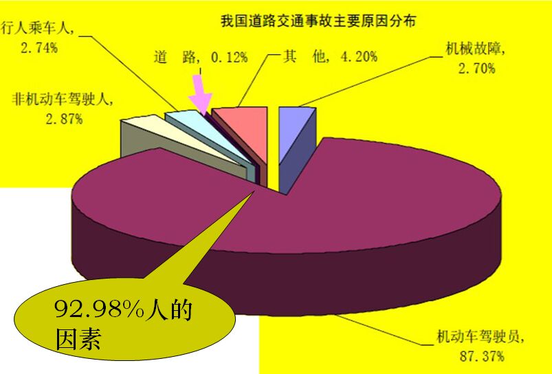 海因里希用多米諾骨牌來形象地描述事故因果的連鎖關系:在多米諾骨牌系列中,一只骨牌被碰倒了,其余的骨牌將相續按波的方向被碰到,如果移去其中一只骨牌,則連鎖反應被破壞,事故被終止。他的理論人為,防止人的不安全行為,消除非人為因素的不安全狀態,以此中斷事故連鎖進程,從而規避事故發生。根據《墨菲定律》的描述,交通要素中一旦有設計缺陷存在,發生事故是時間累計后的必然結果。由于遺傳因素、身體因素、心理因素等多重作用,會對人的判斷力、行動力產生影響,在調取大量事故資料研究后發現,導致事故發生的直接原因中,人為因素的影響占據很大一部分。